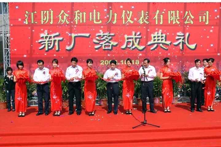 2008年10月18日對江陰眾和電力儀表有限公司有著重要的歷史意義,是江陰眾和儀表的重要轉折點,是公司迎來再次飛速發展的開始。公司總投資2582萬元的新廠房和新辦公樓順利投入使用。新廠區占地面積44.8畝,建筑面積18653平方米,主要設有生產車間、辦公樓 、餐廳、娛樂室及公共配套用房等。